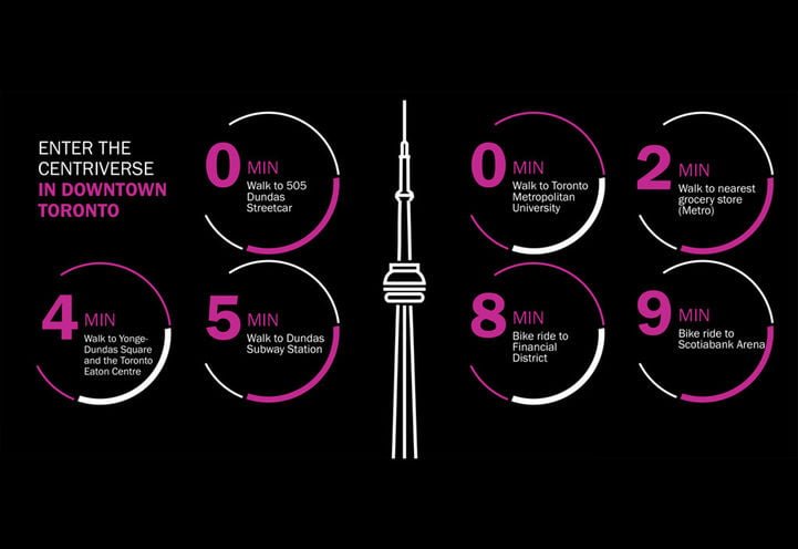 Centricity Condos is ideally located just south of Metropolitan University and near several major employment hubs, making it perfect for post-secondary students and young professionals. The downtown East area is home to prestigious institutions such as the University of Toronto and George Brown College, as well as key employment centers like the Financial District and Hospital Row. This location allows residents to significantly reduce commute times, offering an ideal balance of work, study, and leisure.
